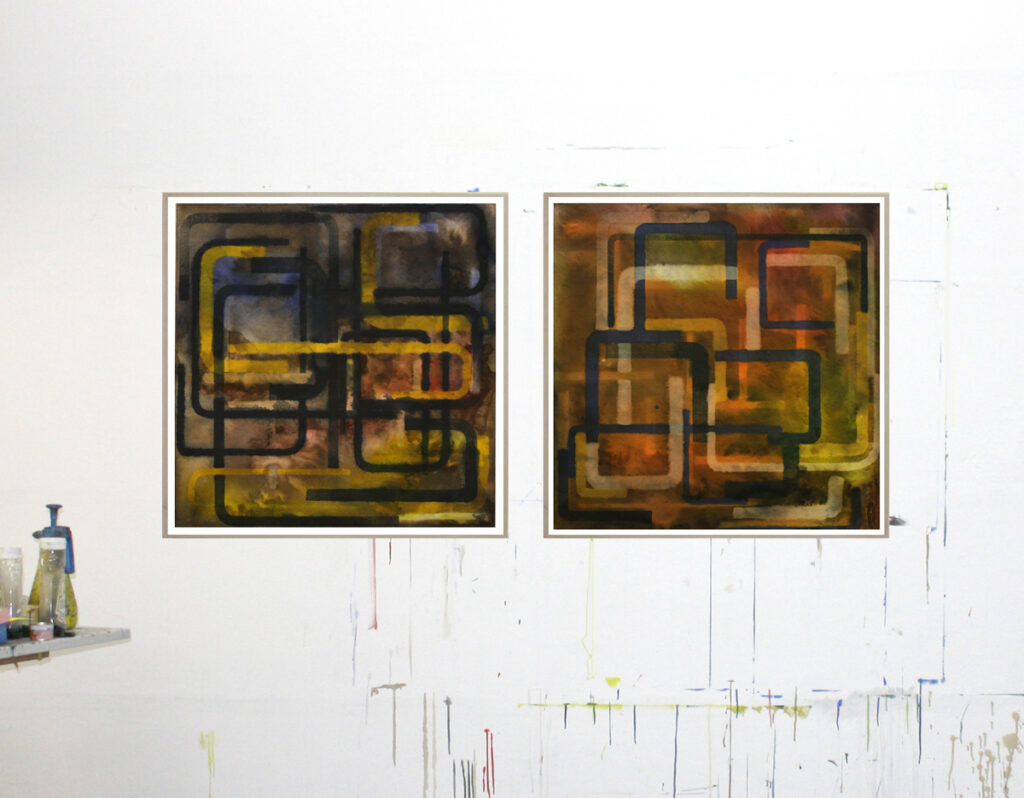 Energies- Sun counting (left), out of space (right), 2023, 92x92cm 2x