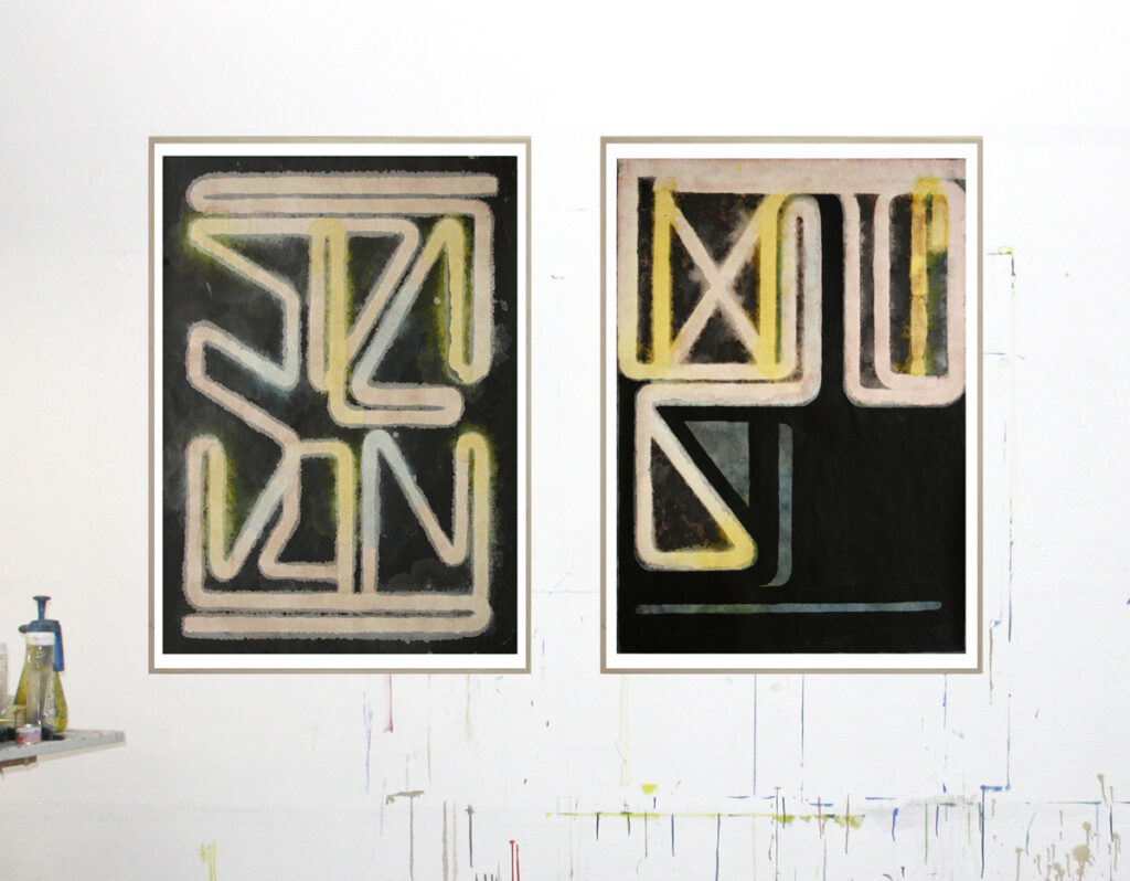 Metro- pale neon light (left) shaft (right), 2023, 120x90cm 2x